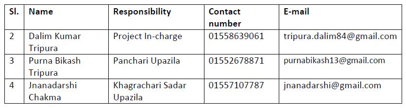 Partner: Kabidang (Sub-Parter), working at Dighinala upazila, project staff- 6 (F=3, M=3), Budget= 6,578,060 (Out of total project budget)